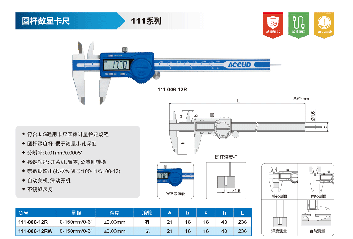 ? 分辨率: 0.01mm/0.0005"