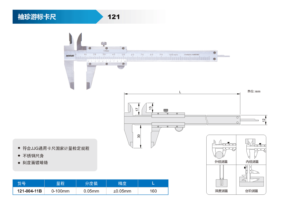 簡短描述: ? 符合JJG通用卡尺國家計(jì)量檢定規(guī)程 ? 不銹鋼尺身 ? 刻度面鍍暗鉻