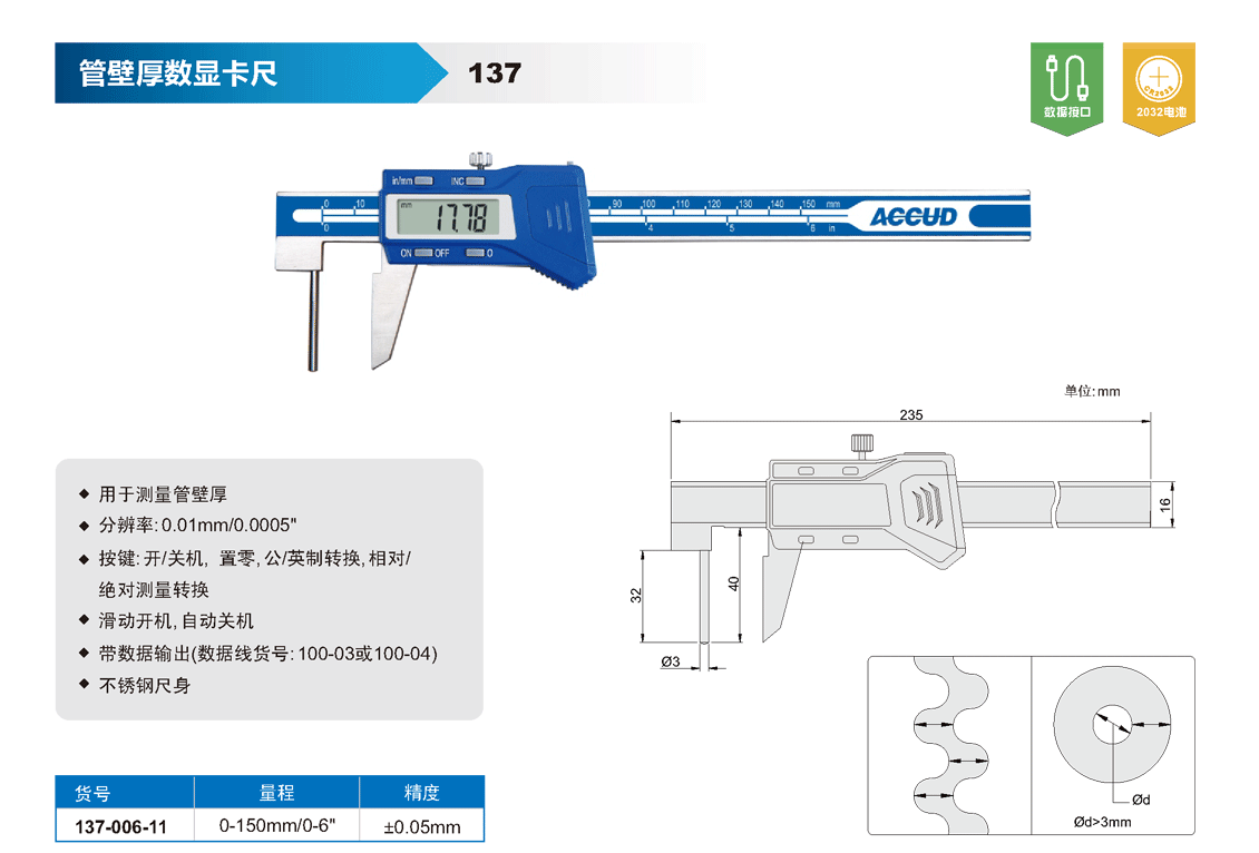 ? 分辨率: 0.01mm/0.0005"