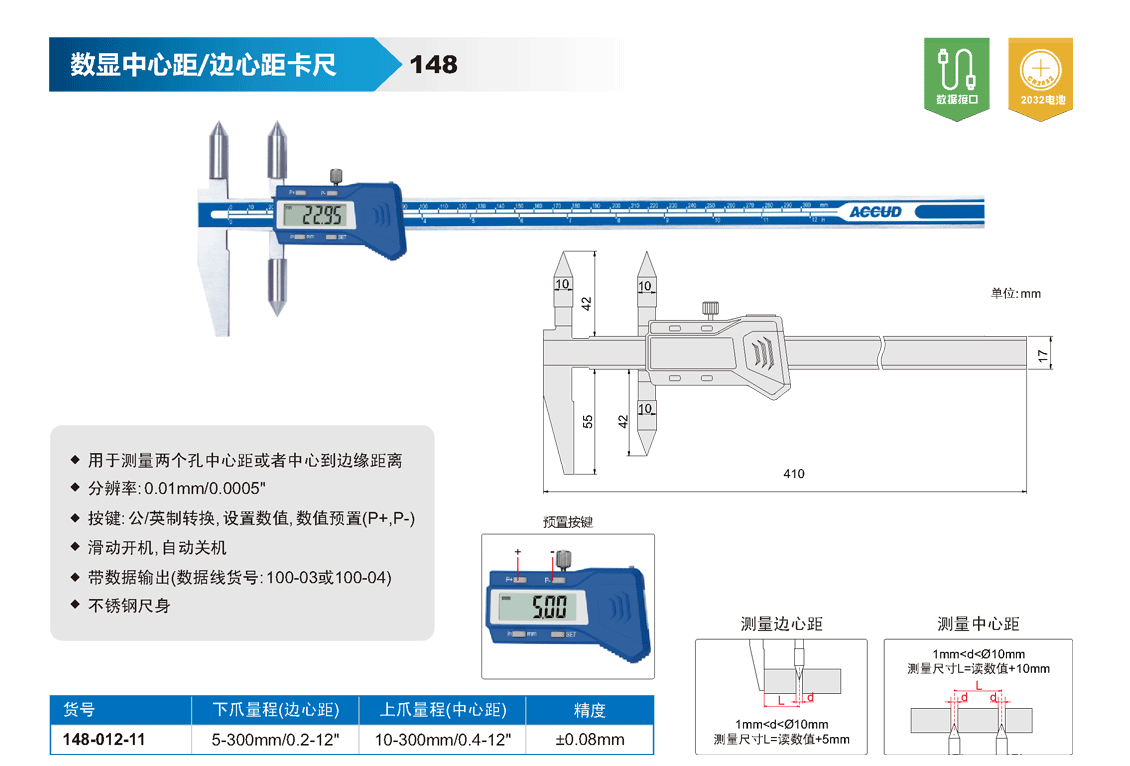 數(shù)顯中心距/邊心距卡尺