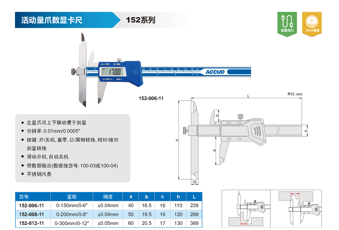 ? 左量爪可上下移動(dòng)便于測(cè)量