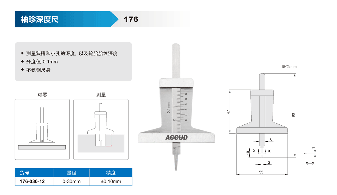 簡短描述: ? 測量狹槽和小孔的深度, 以及輪胎胎紋深度 ? 分度值: 0.1mm ? 不銹鋼尺身