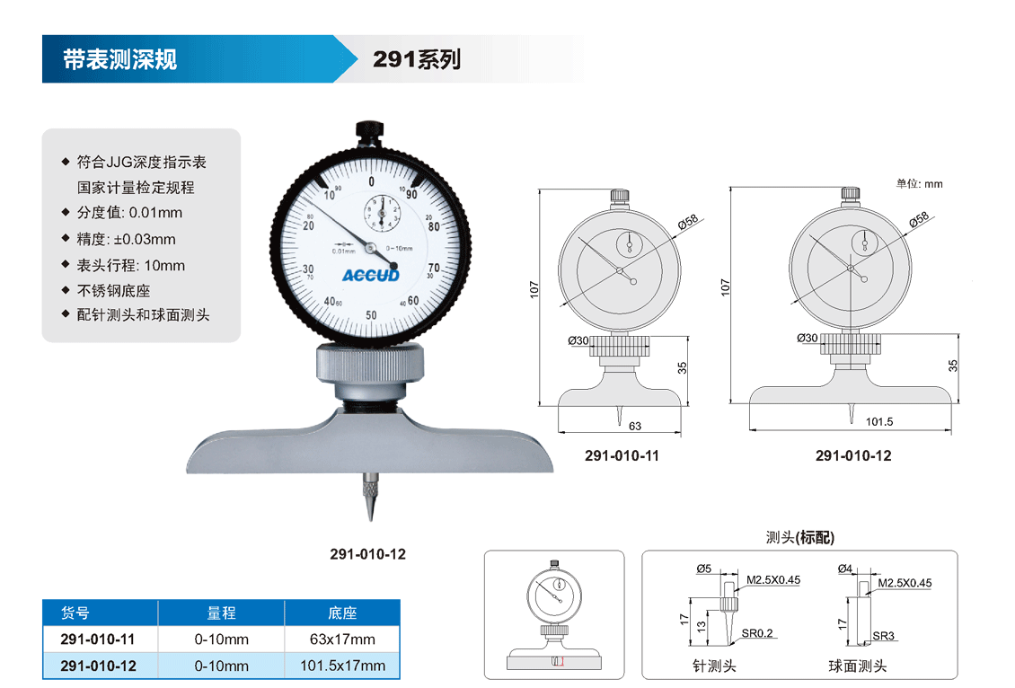 簡(jiǎn)短描述: ? 符合JJG深度指示表國(guó)家計(jì)量檢定規(guī)程 ? 分度值: 0.01mm ? 精度: 0.03mm ? 表頭行程: 10mm ? 不銹鋼底座 ? 配針測(cè)頭和球面測(cè)頭