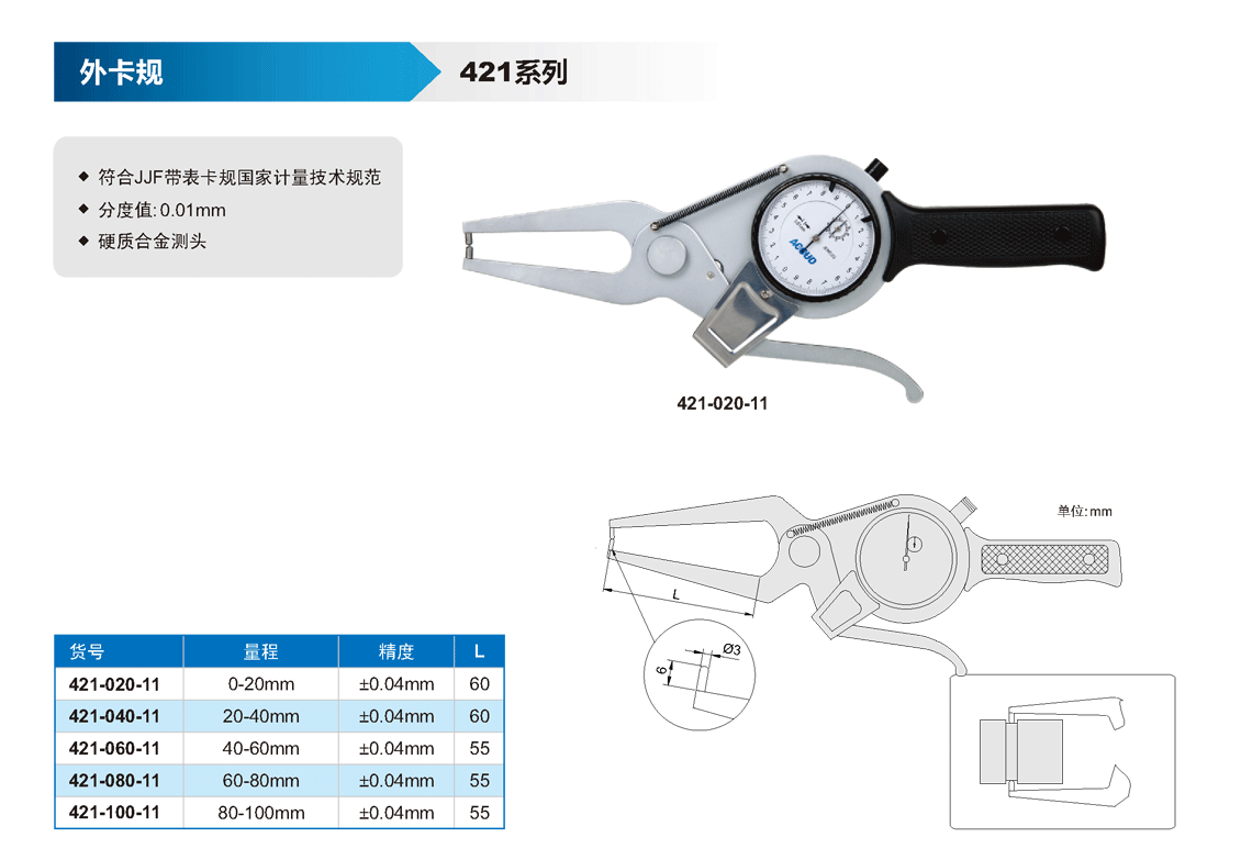 簡(jiǎn)短描述: ? 符合JJF帶表卡規(guī)國(guó)家計(jì)量技術(shù)規(guī)范 ? 分度值: 0.01mm ? 硬質(zhì)合金測(cè)頭