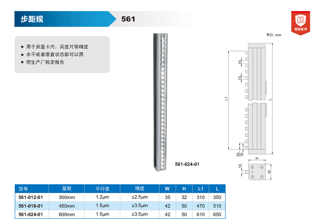 簡短描述: ? 用于測量卡尺,高度尺等精度 ? 水平或者垂直狀態(tài)都可以用 ? 帶生產(chǎn)廠檢定報告