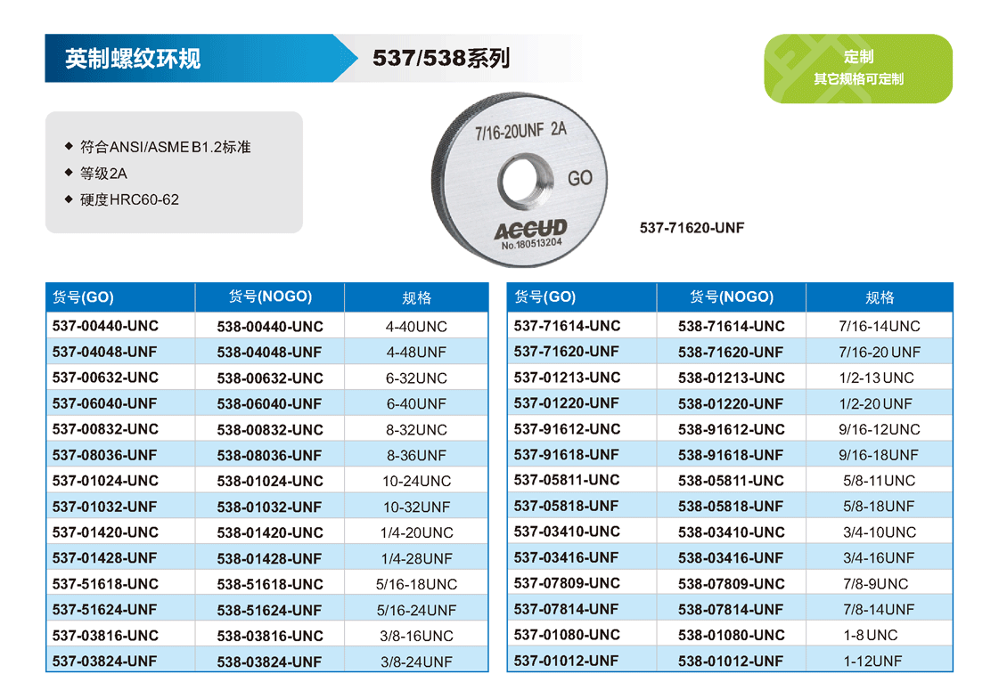 簡短描述: ? 符合ANSI/ASME B1.2標準 ? 等級2A ? 硬度HRC60-62