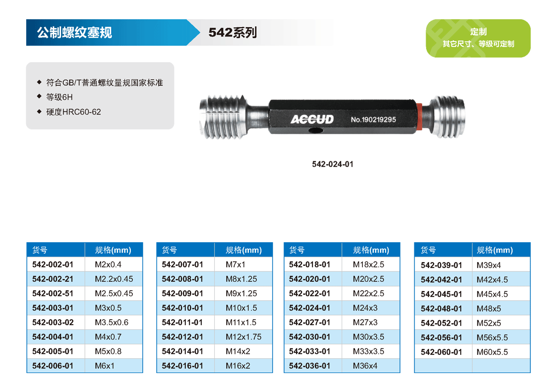 簡短描述: ? 符合GB/T普通螺紋量規(guī)國家標(biāo)準(zhǔn) ? 等級6H ? 硬度HRC60-62