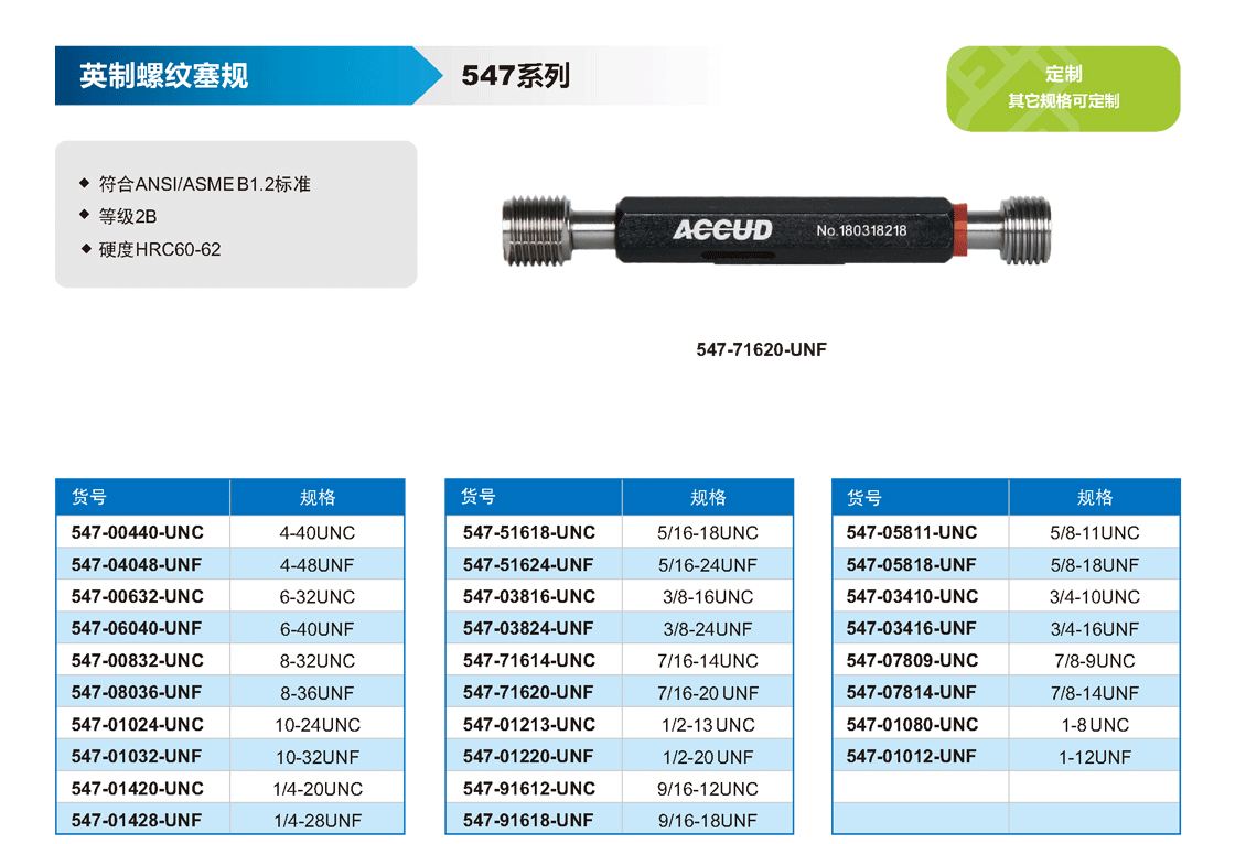 簡短描述: ? 符合ANSI/ASME B1.2標準 ? 等級2B ? 硬度HRC60-62