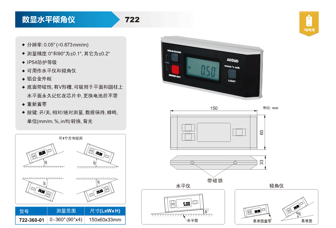 ? 可用作水平儀和傾角儀