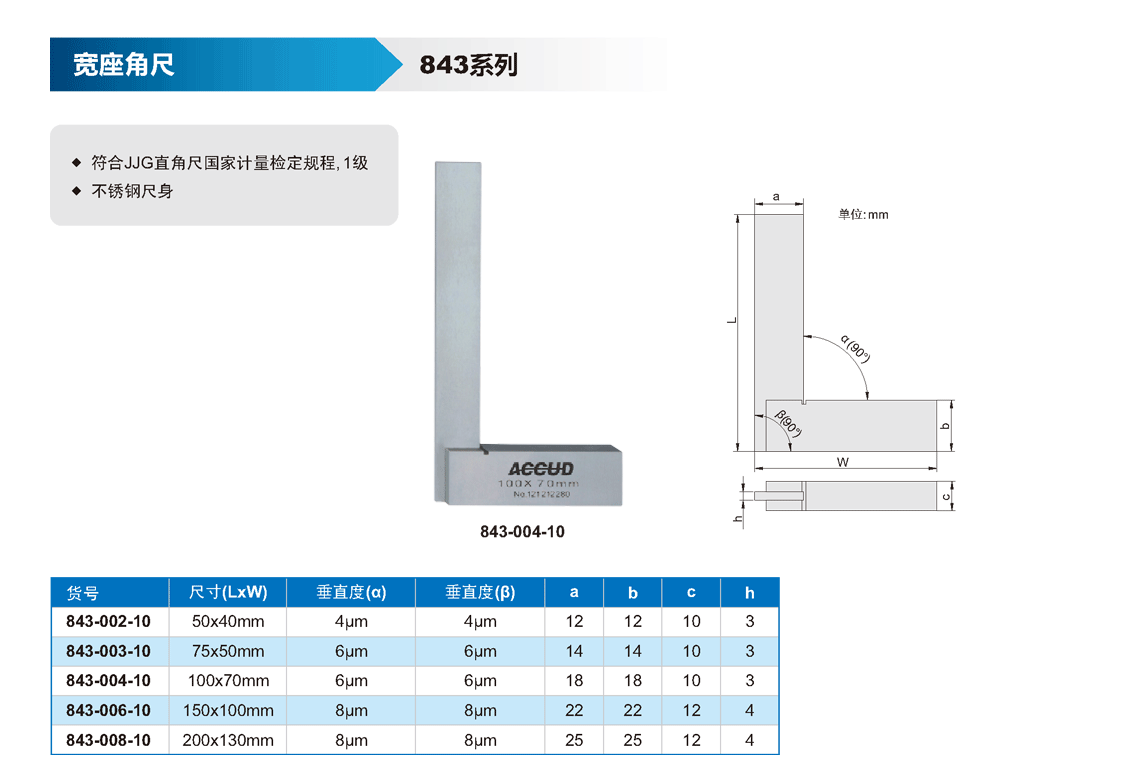 簡(jiǎn)短描述: ? 符合JJG直角尺國家計(jì)量檢定規(guī)程, 1級(jí) ? 不銹鋼尺身