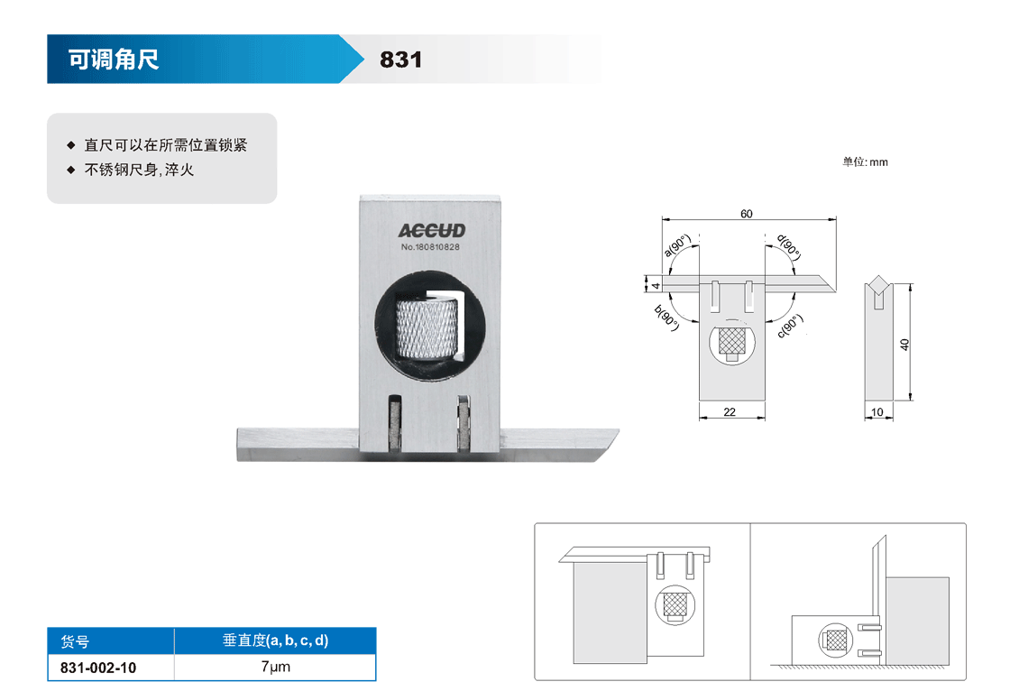 簡(jiǎn)短描述: ? 直尺可以在所需位置鎖緊 ? 不銹鋼尺身, 淬火