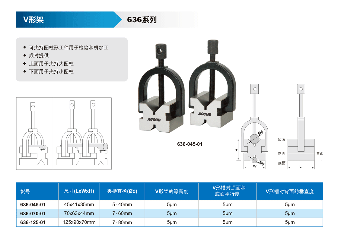 簡短描述: ? 可夾持圓柱形工件用于檢驗和機加工 ? 成對提供 ? 上面用于夾持大圓柱 ? 下面用于夾持小圓柱