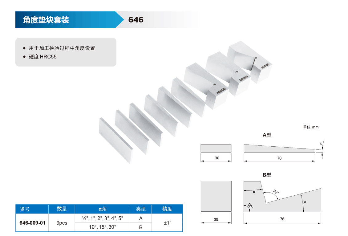 簡短描述: ? 用于加工檢驗(yàn)過程中角度設(shè)置 ? 硬度 HRC55