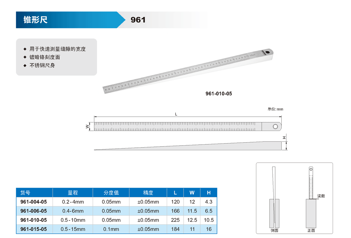 簡短描述: ? 用于快速測量縫隙的寬度 ? 鍍暗鉻刻度面 ? 不銹鋼尺身