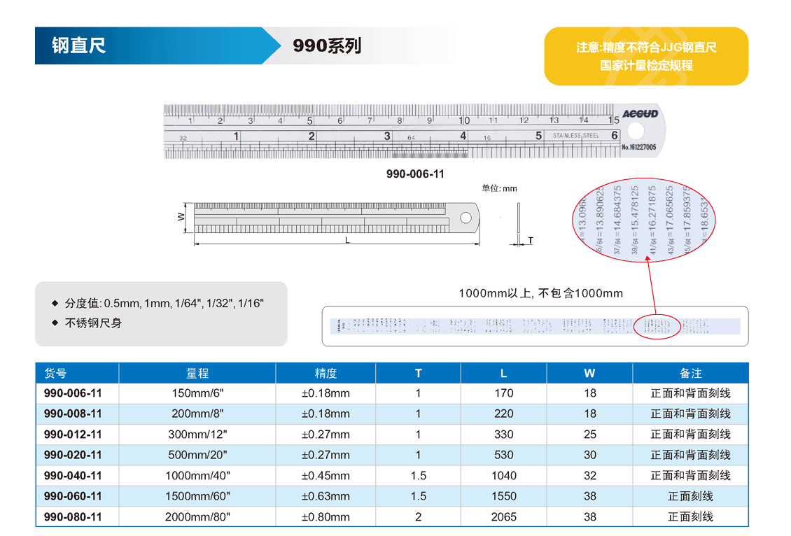 簡短描述: ? 分度值:0.5mm, 1mm, 1/64", 1/32", 1/16" ? 不銹鋼尺身