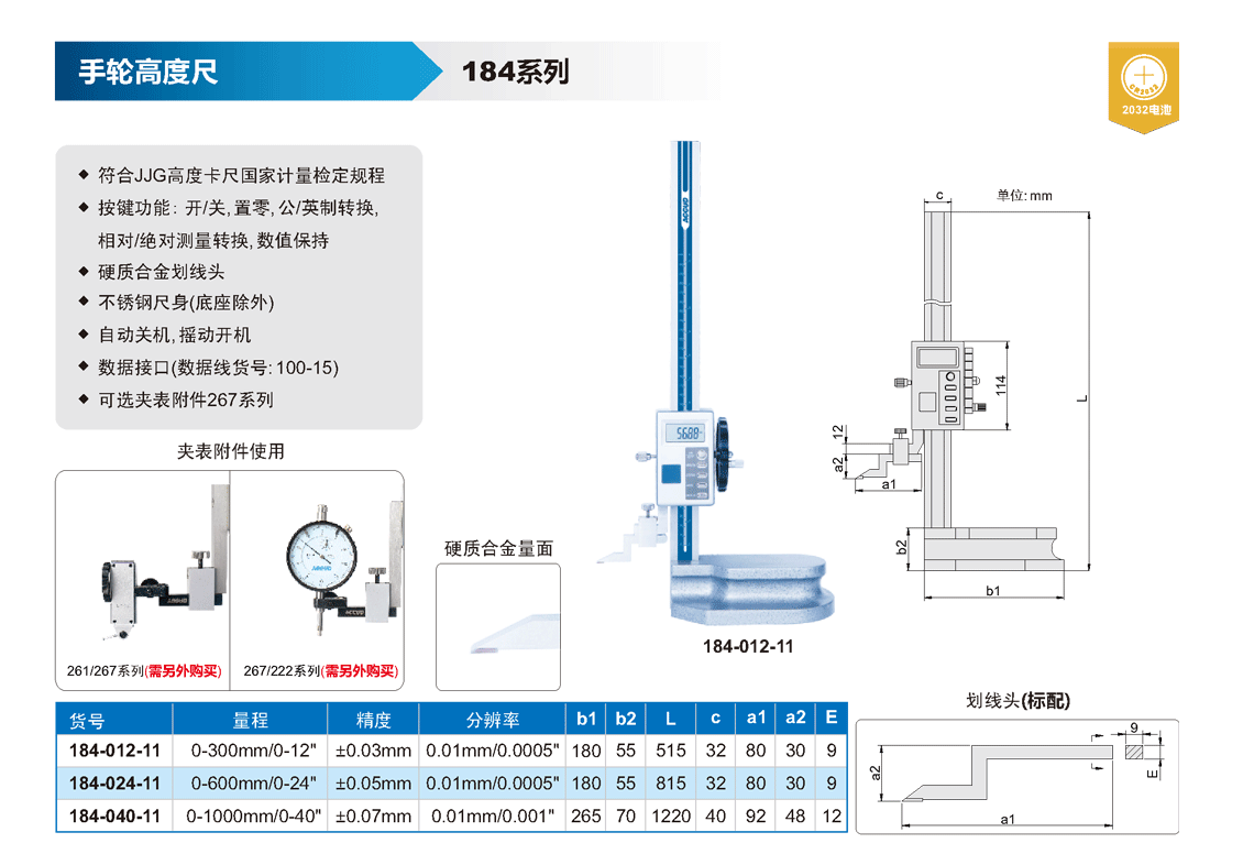 ? 按鍵功能: 開/關(guān), 置零, 公/英制轉(zhuǎn)換,
