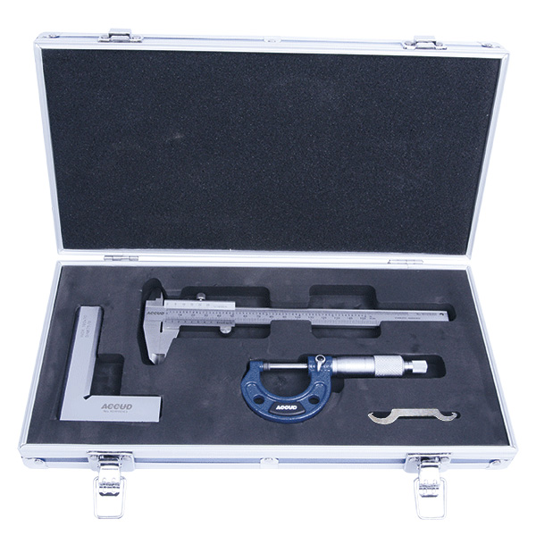 簡短描述: ? 包含: 1) 0-150mm/0-6"游標(biāo)卡尺(貨號120-006-12) 2) 0-25m外徑千分尺(貨號321-001-01) 3) 90° 刀口尺(貨號832-004-10)