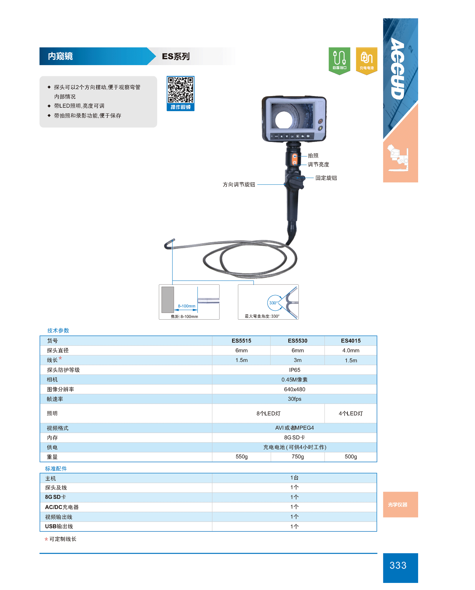 簡(jiǎn)短描述: ? 探頭可以2個(gè)方向擺動(dòng),便于觀察彎管 內(nèi)部情況 ? 帶LED照明,亮度可調(diào) ? 帶拍照和錄影功能,便于保存