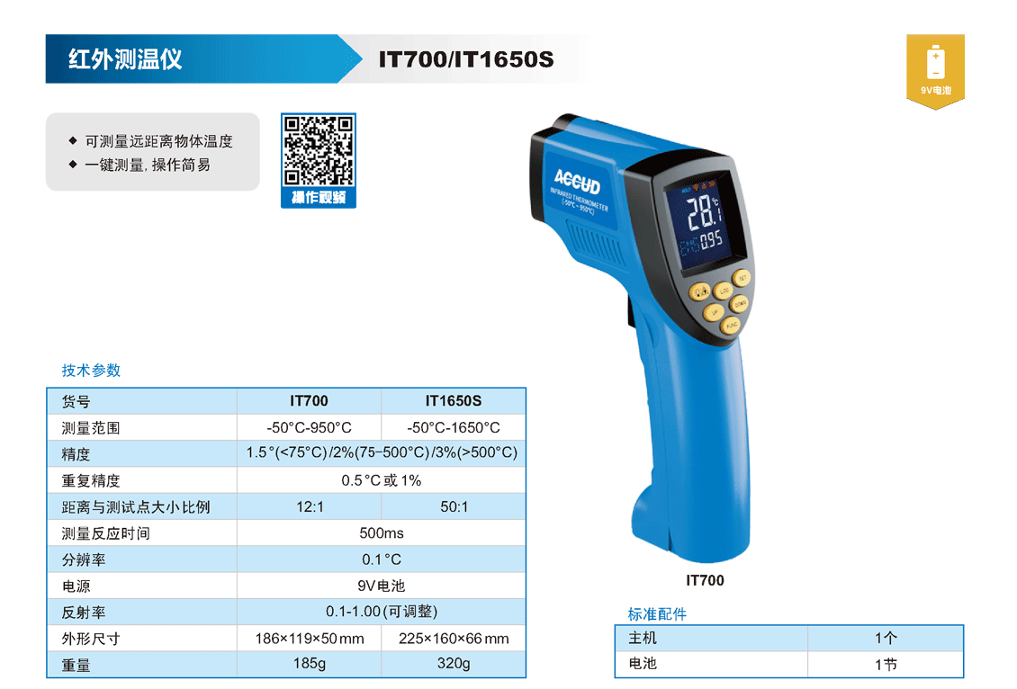 簡短描述: ? 可測量遠距離物體溫度 ? 一鍵測量,操作簡易