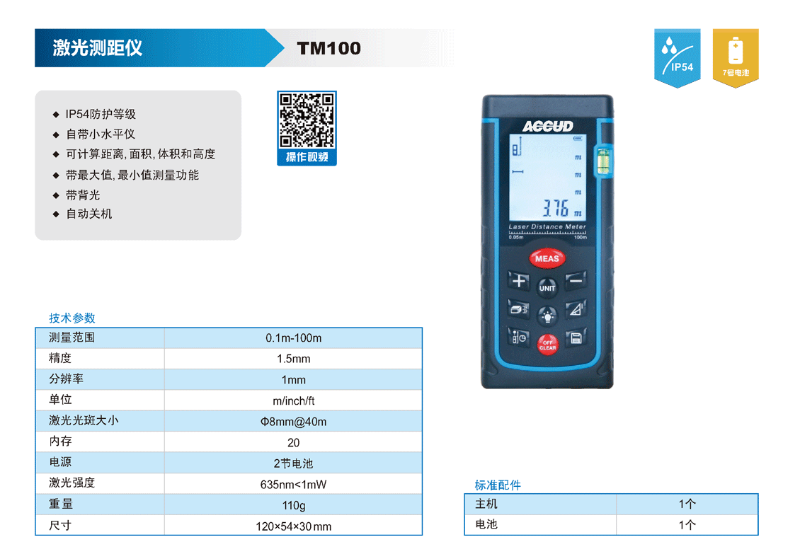 簡(jiǎn)短描述: ? IP54防護(hù)等級(jí) ? 自帶小水平儀 ? 可計(jì)算距離, 面積, 體積和高度 ? 帶最大值, 最小值測(cè)量功能 ? 帶背光 ? 自動(dòng)關(guān)機(jī)