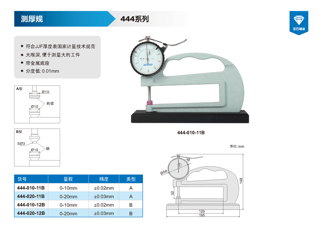 簡短描述: ? 符合JJF厚度表國家計量技術(shù)規(guī)范 ? 大喉深, 便于測量大的工件 ? 帶金屬底座 ? 分度值:0.01mm