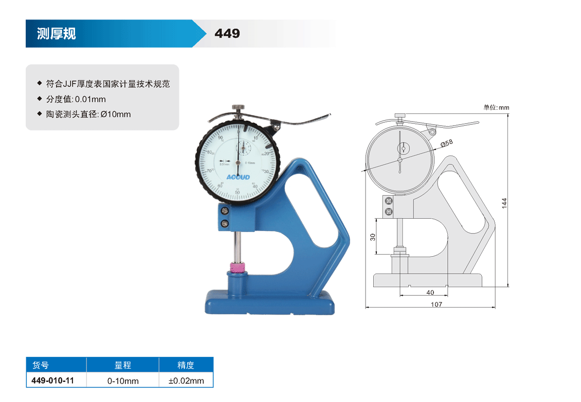 簡(jiǎn)短描述: ? 符合JJF厚度表國(guó)家計(jì)量技術(shù)規(guī)范 ? 分度值:0.01mm ? 陶瓷測(cè)頭直徑: ?10mm