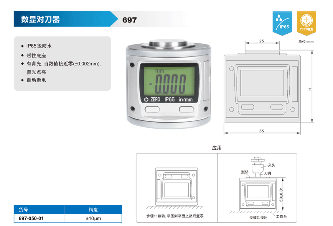 簡短描述: ? IP65 級防水 ? 磁性底座 ? 有背光,當(dāng)數(shù)值接近零(±0.002mm), 背光點(diǎn)亮 ? 自動斷電