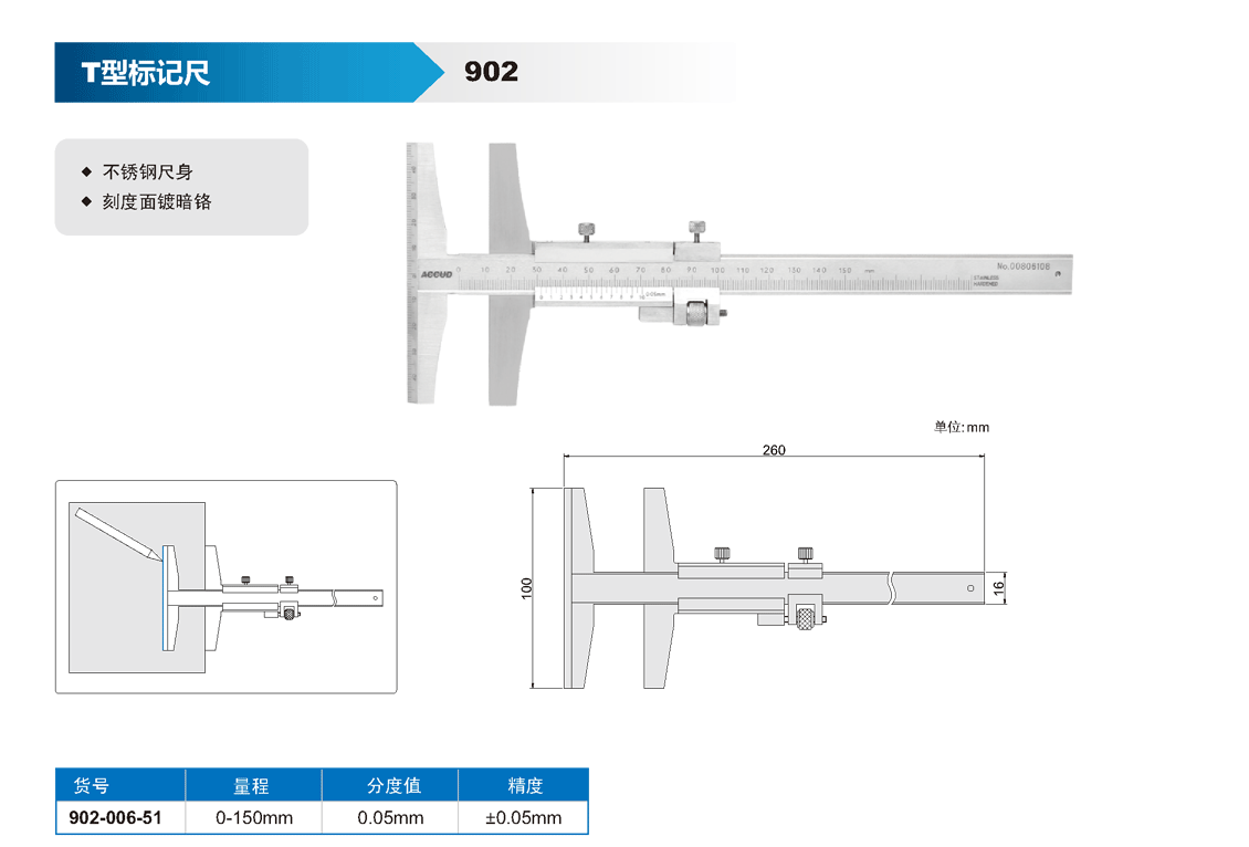 簡短描述: ? 不銹鋼尺身 ? 刻度面鍍暗鉻