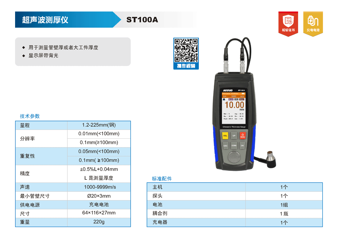 簡短描述: ? 用于測量管壁厚或者大工件厚度 ? 顯示屏帶背光