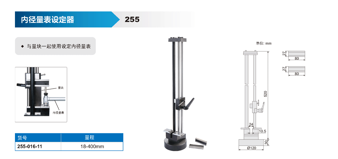 簡短描述: ? 與量塊一起使用設(shè)定內(nèi)徑量表