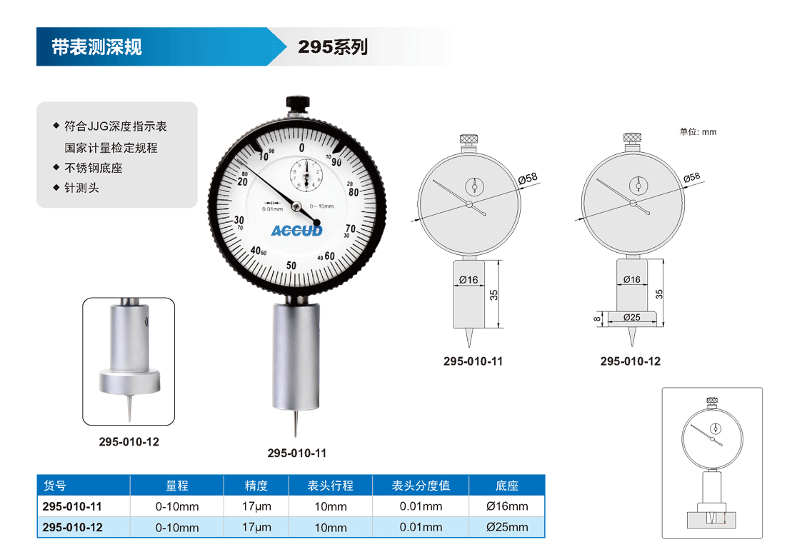 簡短描述: ? 符合JJG深度指示表國家計量檢定規(guī)程 ? 不銹鋼底座 ? 針測頭