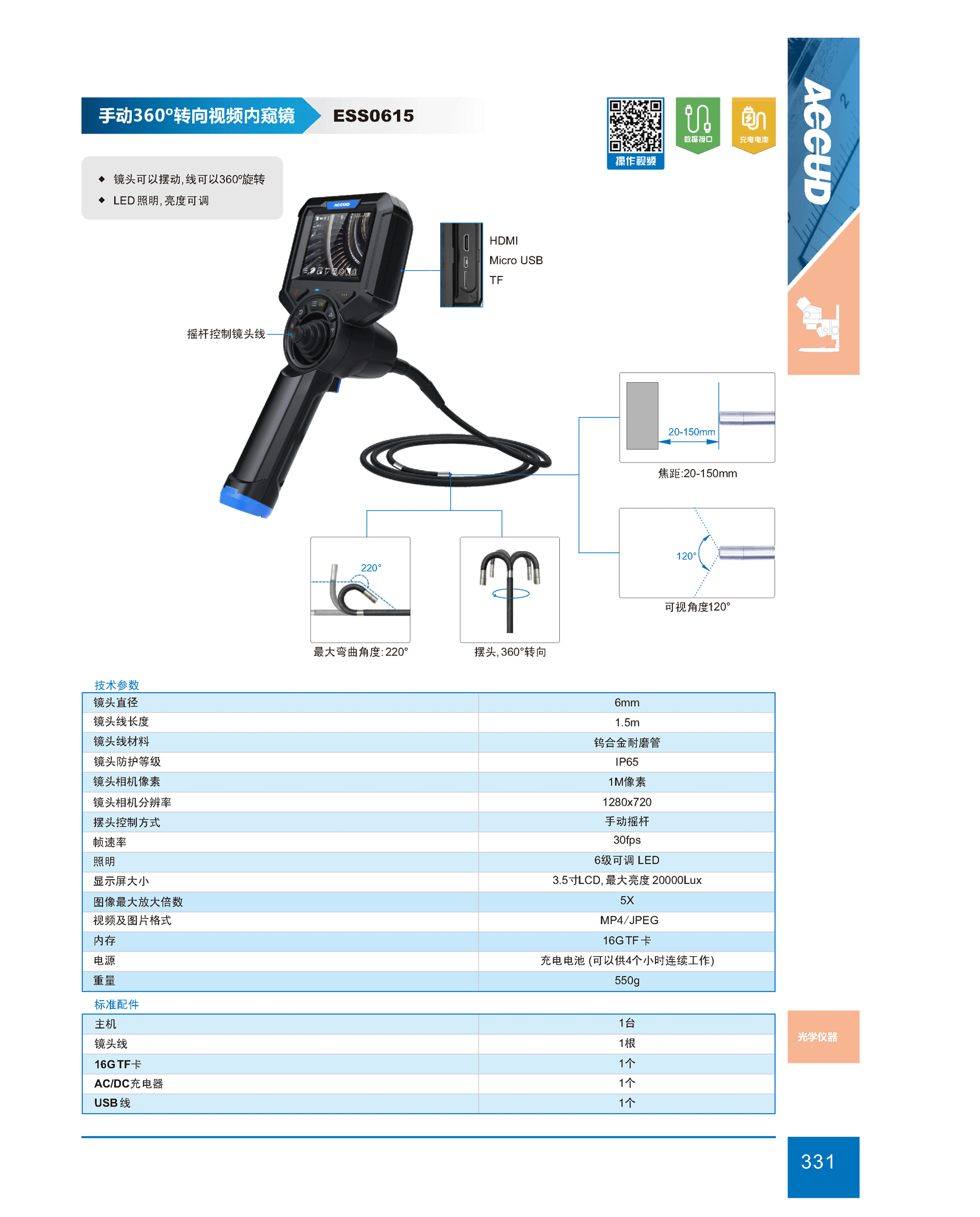 手動360°轉向視頻內(nèi)窺鏡