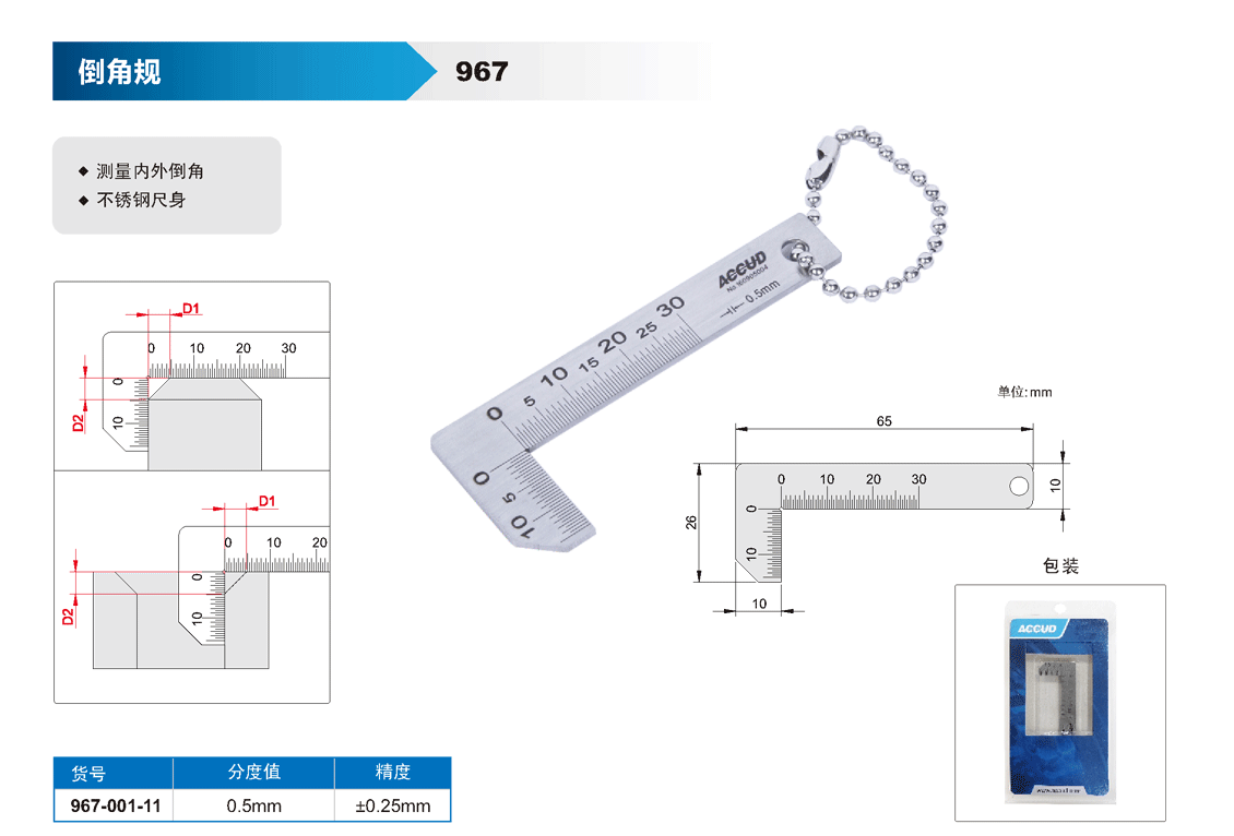 簡短描述: ? 測量內(nèi)外倒角 ? 不銹鋼尺身