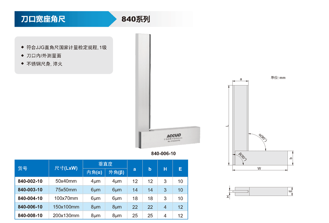 簡(jiǎn)短描述: ? 符合JJG直角尺國(guó)家計(jì)量檢定規(guī)程, 1級(jí) ? 刀口內(nèi)/外測(cè)量面 ? 不銹鋼尺身, 淬火