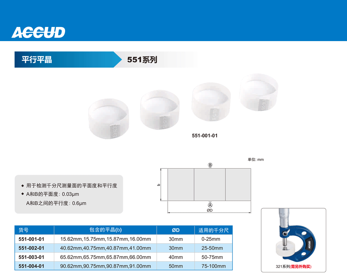 簡(jiǎn)短描述: ? 用于檢測(cè)千分尺測(cè)量面的平面度和平行度 ? A和B的平面度: 0.03μm A和B之間的平行度: 0.6μm