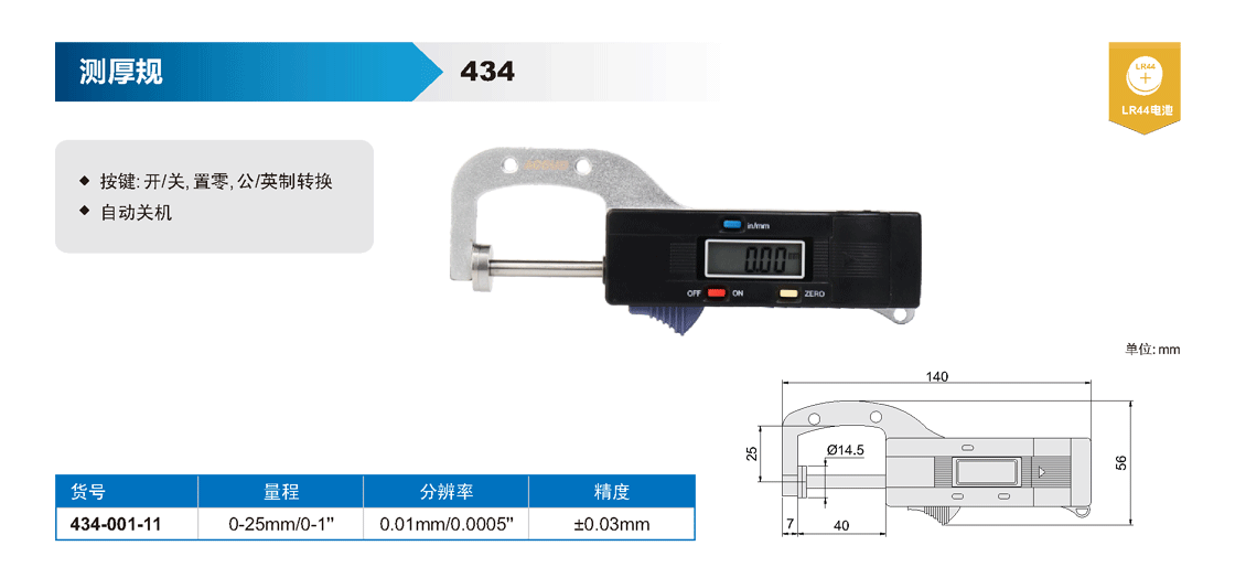 簡短描述: ? 按鍵: 開/關(guān), 置零, 公/英制轉(zhuǎn)換 ? 自動關(guān)機