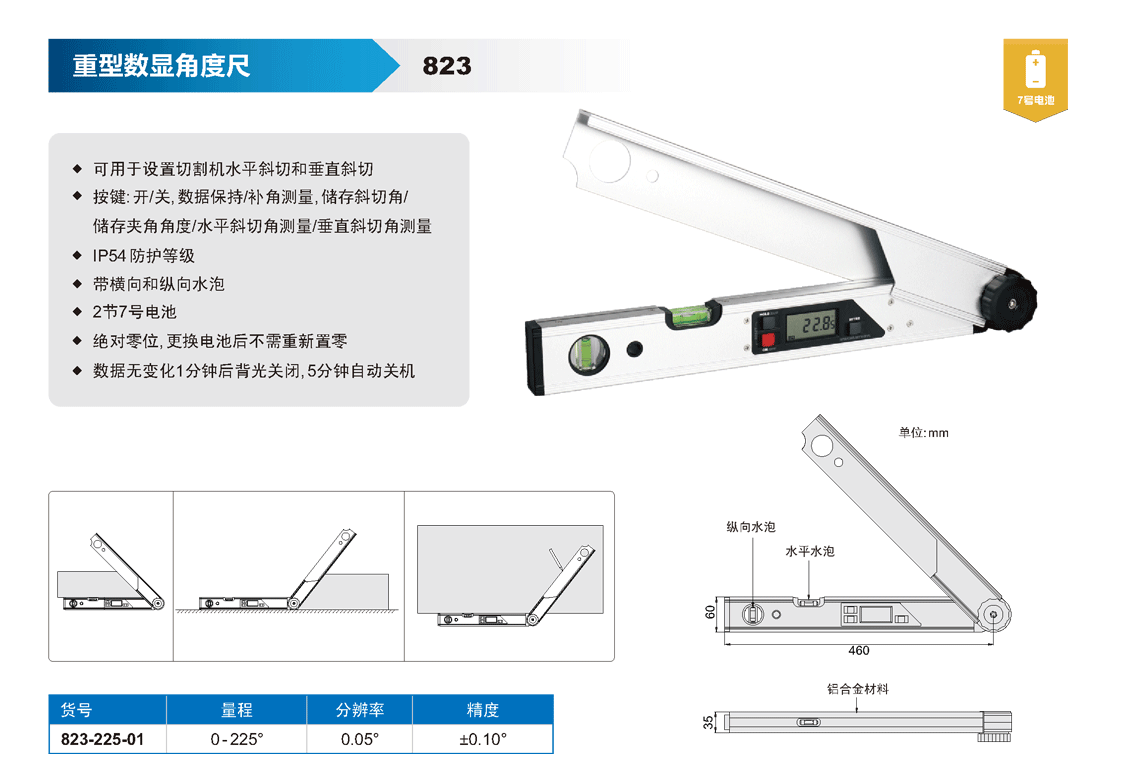 ? 按鍵: 開/關(guān), 數(shù)據(jù)保持/補(bǔ)角測量, 儲存斜切角/