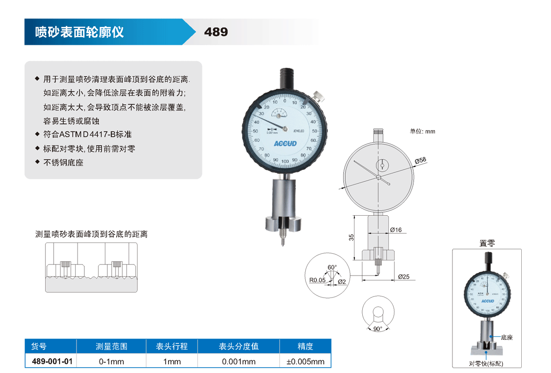 簡短描述: ? 用于測量噴砂清理表面峰頂?shù)焦鹊椎木嚯x. 如距離太小, 會(huì)降低涂層在表面的附著力; 如距離太大, 會(huì)導(dǎo)致頂點(diǎn)不能被涂層覆蓋, 容易生銹或腐蝕 ? 符合ASTMD4417-B標(biāo)準(zhǔn) ? 標(biāo)配對零塊, 使用前需對零 ? 不銹鋼底座