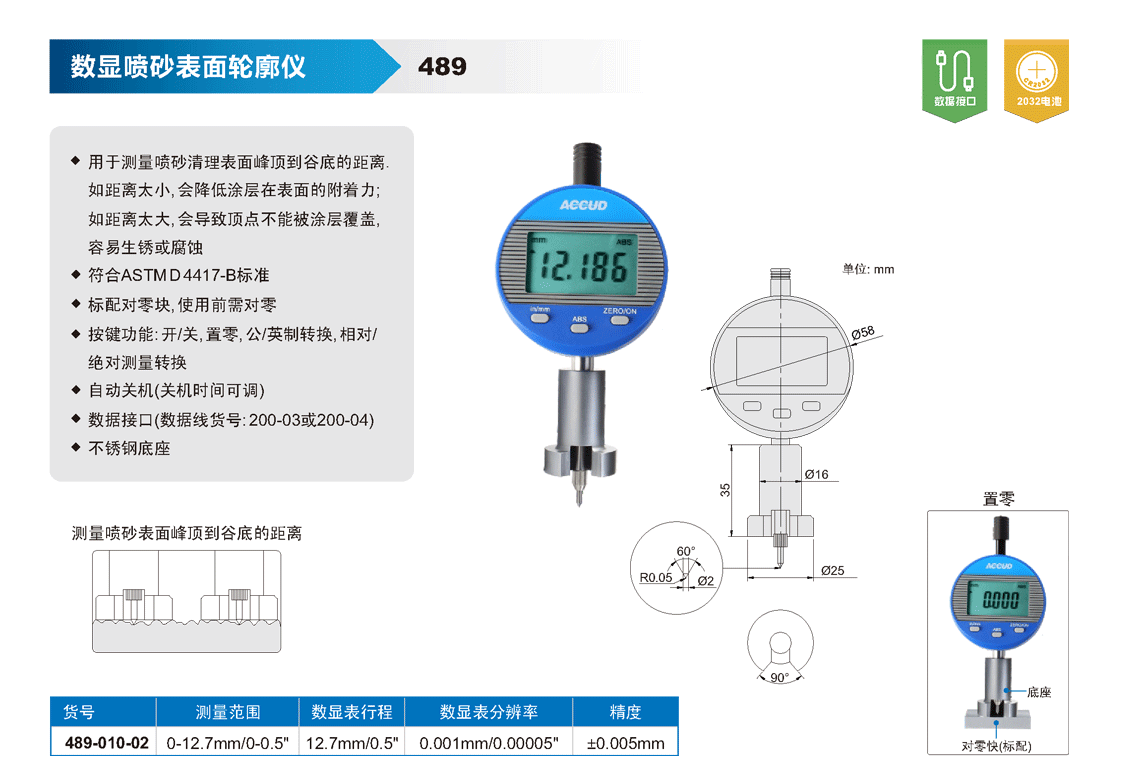 ? 用于測量噴砂清理表面峰頂?shù)焦鹊椎木嚯x.