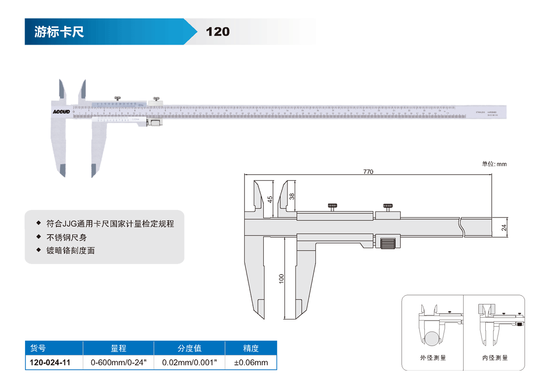 簡短描述: ? 符合JJG通用卡尺國家計量檢定規(guī)程 ? 不銹鋼尺身 ? 鍍暗鉻刻度面