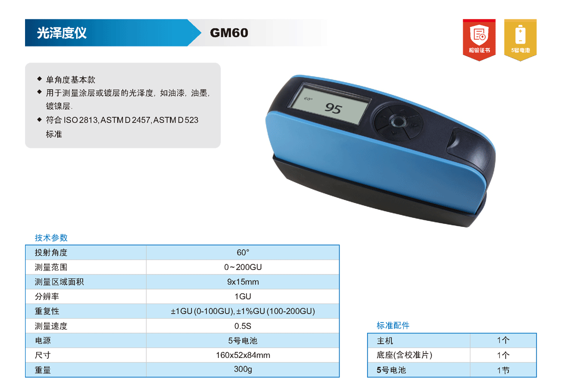 簡(jiǎn)短描述: ? 單角度基本款 ? 用于測(cè)量涂層或鍍層的光澤度, 如油漆, 油墨, 鍍鎳層. ? 符合 ISO 2813, ASTM D 2457, ASTM D 523 標(biāo)準(zhǔn)