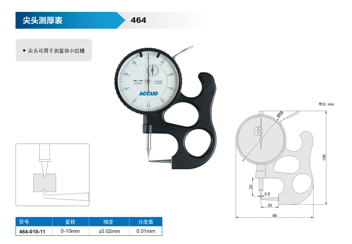 簡短描述: ? 尖頭可用于測量狹小凹槽