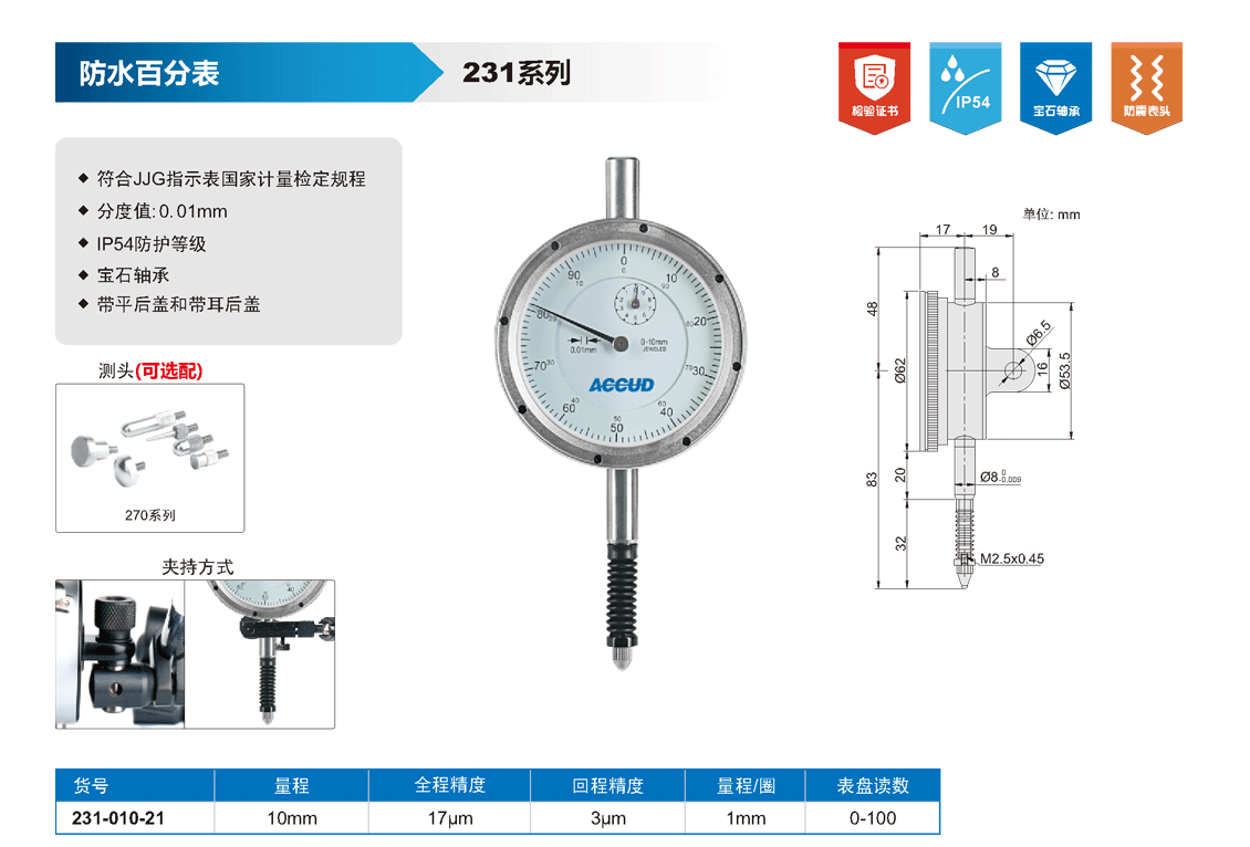 簡短描述: ? 符合JJG指示表國家計量檢定規(guī)程 ? 分度值: 0.01mm ? IP65防護等級 ? 寶石軸承 ? 帶平后蓋和帶耳后蓋
