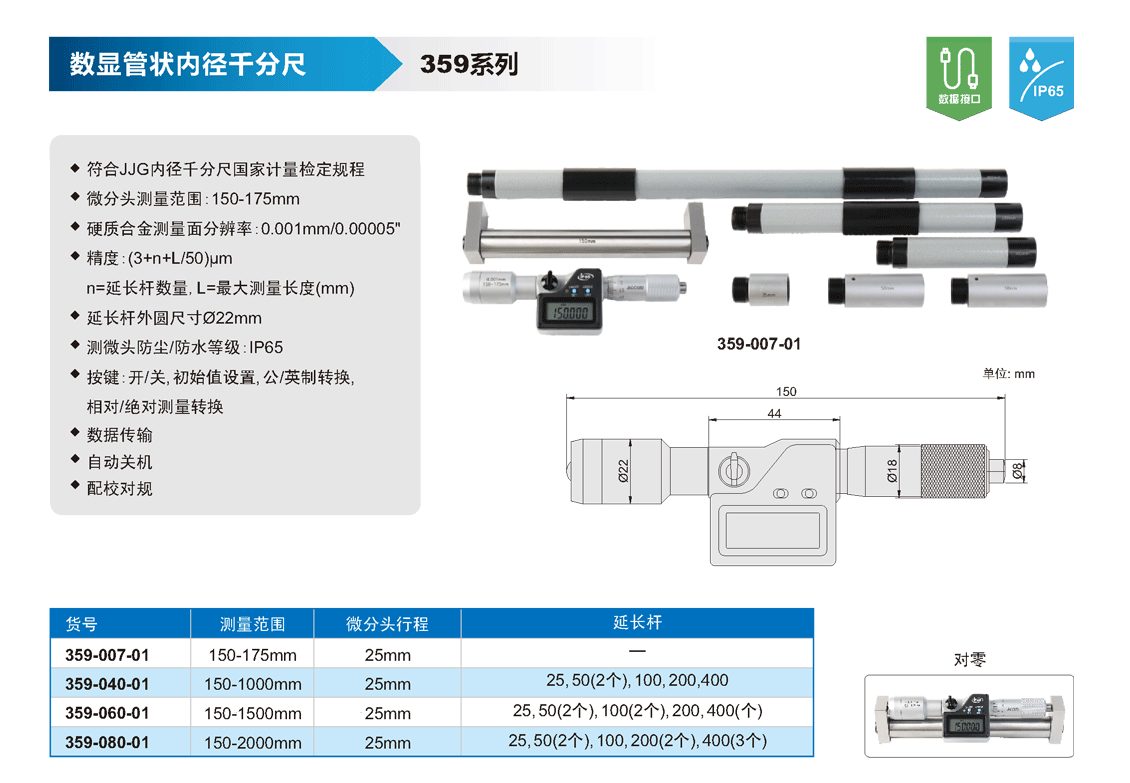 ? 硬質(zhì)合金測(cè)量面分辨率:0.001mm/0.00005"
