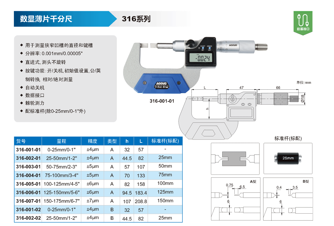 ? 配標(biāo)準(zhǔn)桿(除0-25mm/0-1"外)
