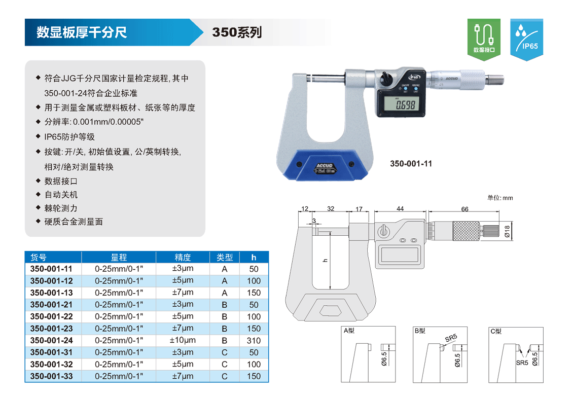 ? 分辨率: 0.001mm/0.00005"