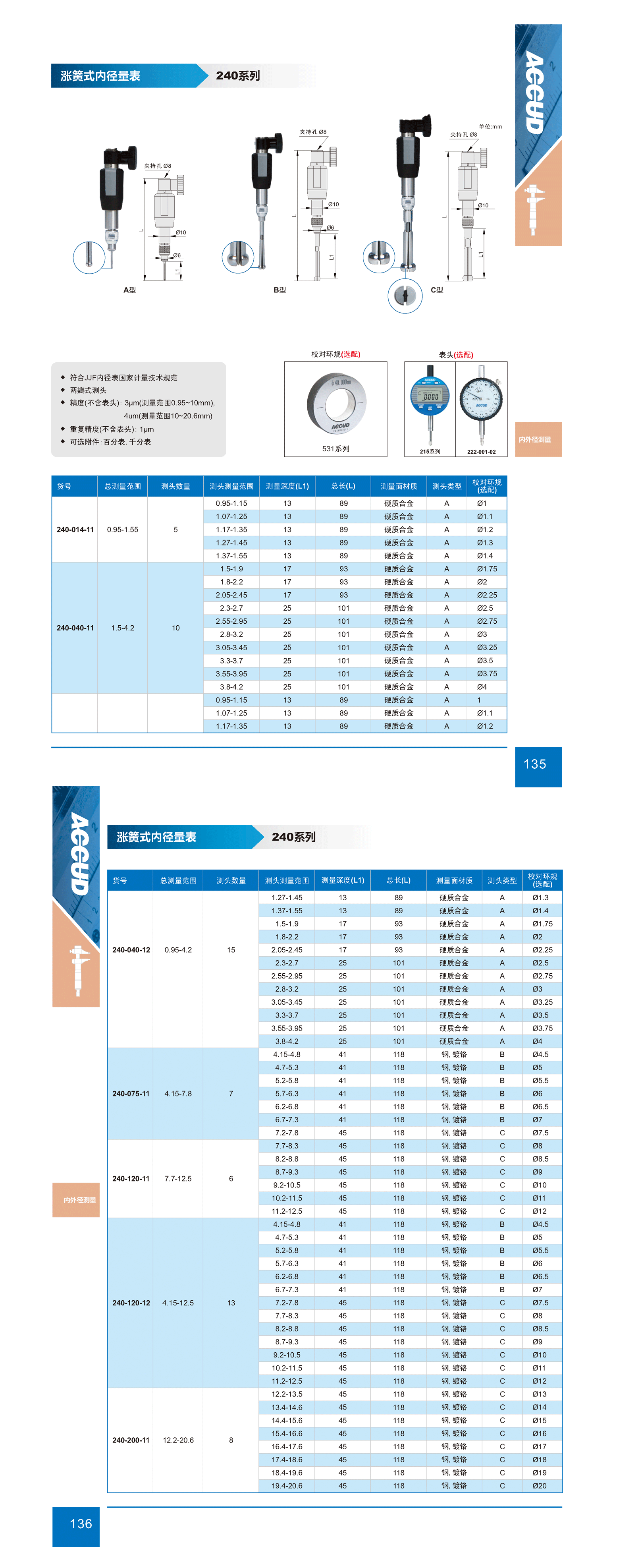 簡短描述: ? 符合JJF內(nèi)徑表國家計量技術(shù)規(guī)范 ? 兩瓣式測頭 ? 精度(不含表頭): 3μm(測量范圍0.95~10mm), 4um(測量范圍10~20.6mm) ? 重復(fù)精度(不含表頭): 1μm ? 可選附件:百分表,千分表