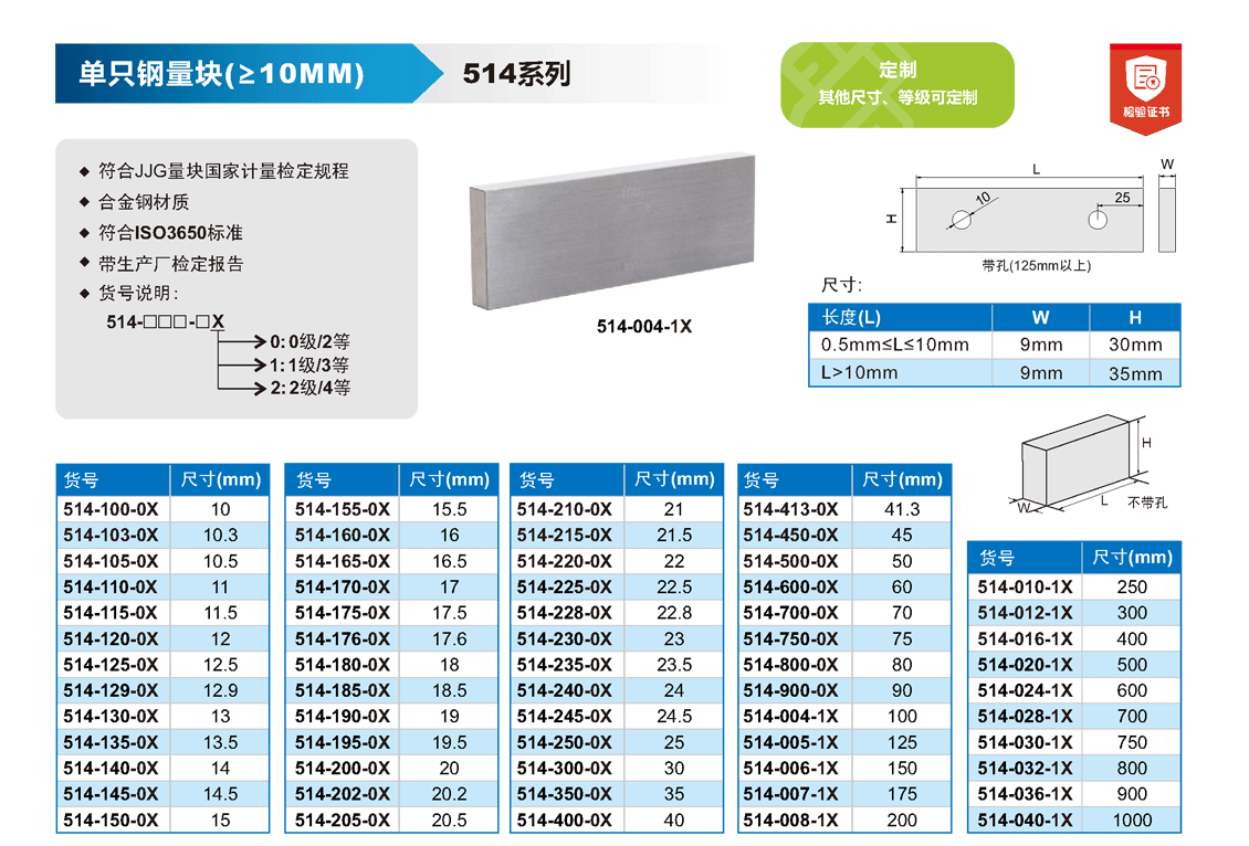 簡短描述: ? 符合JJG量塊國家計量檢定規(guī)程 ? 合金鋼材質(zhì) ? 符合ISO3650標(biāo)準(zhǔn) ? 帶生產(chǎn)廠檢定報告
