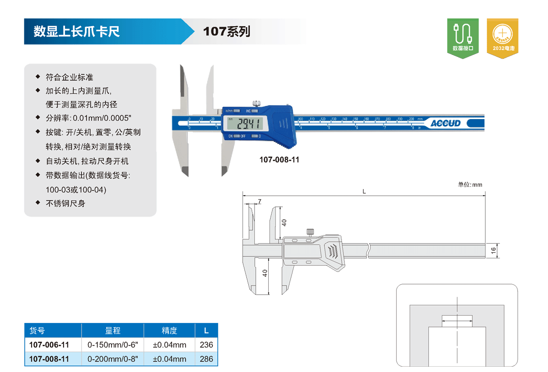 數(shù)顯上長爪卡尺