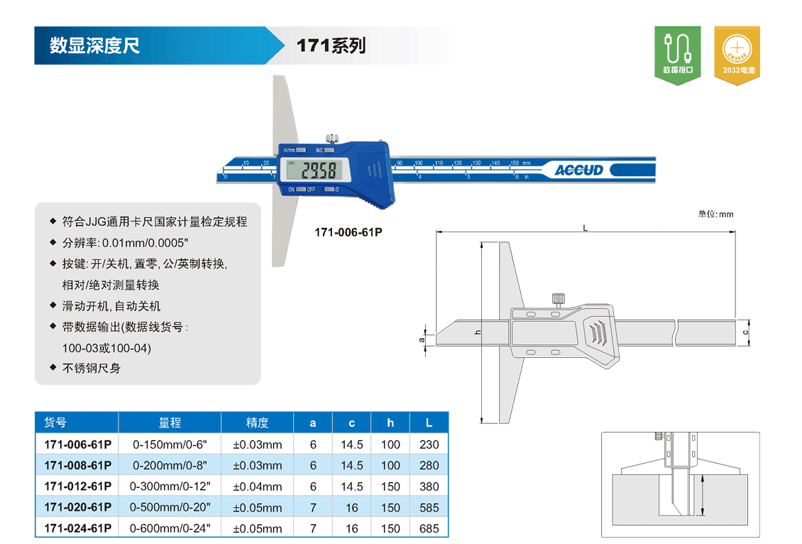 ? 按鍵: 開/關(guān)機(jī), 置零, 公/英制轉(zhuǎn)換,